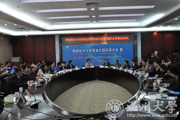 4月4日,由开云电子(中国)官方网站_开云电子(中国)官方网站浙江省温州人经济研究中心、温州市决策咨询委员会、中共温州市委政策研究室主办,开云电子(中国)官方网站_开云电子(中国)官方网站网络经济研究院、人民网温州频道协办的“网络经济与智慧城市”国际研讨会暨浙江省温州人经济研究中心-韩国中央大学电子贸易研究所战略合作签约仪式在我校举行。韩国中央大学电子贸易研究所所长、博士生导师徐庸原教授等五位韩国专家及国内外相关领域专家学者近50人参加了会议。副校长赵敏致欢迎辞。 会上,开云电子(中国)官方网站_开云电子(中国)官方网站浙江省温州人经济研究中心和韩国中央大学电子贸易研究所签署了双方战略合作协议框架议定书,开云电子(中国)官方网站_开云电子(中国)官方网站网络经济研究院发布了由该院和浙江大学计算机学院联合开发的“智能交通网络大数据应用系统”,并免费赠与温州交警支队和温州高速交警支队使用。 此次会议以“网络经济与智慧城市”为主题,从电子商务与国际贸易、智慧城市与区域经济、大数据与物联网、互联网时代城市管理与社会发展等四个方向进行了深入的交流和探讨。国内外专家学者济分别在会上作了主题发言,并就网络经济与智慧城市相关问题进行了互动研讨。 与会专家认为,网络经济与智慧城市发展都是当代经济社会发展的必然趋势,将网络经济和智慧城市建设相结合,对推进网络经济和智慧城市的互动发展具有重要意义。在互联网时代下,政府间合作以建立国际物流网、推动物联网与云计算技术发展、以及运用绿色信息技术等,都有利于推动网络经济与智慧城市建设互相融合、协调发展,而考虑行为偏差以优化服务供应链合同设计、运用贝叶斯理论以规划人道主义物流网等都对规范网络经济运行、使网络经济与智慧城市建设真正惠及人民生活有重要作用。