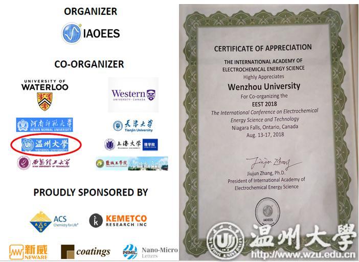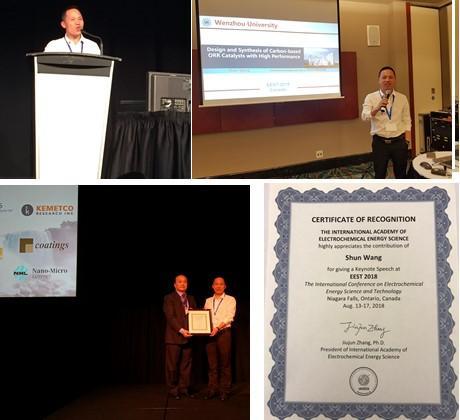 开云电子(中国)官方网站_开云电子(中国)官方网站参会团队负责人王舜教授担任EEST2018大会副主席,并作了题目为“Design and Synthesis of nanostructured carbon materials for high performance electrocatalysis”的主题报告(keynote speech),介绍了近年来开云电子(中国)官方网站_开云电子(中国)官方网站在在光电催化材料、能量存储材料和器件方面的研究情况,相关研究成果相继在国际顶级期刊发表,如在Nat Commun.,2018,9(1), 705;Advanced materials,2018,1707424;Energy Storage Materials.2018,16 (2019) 31–36; Nano Energy, 50 (2018) 229–244;Adv. Energy Mater., 2018,1800944;Adv. Mater.,2018,1705590, J. Mater. Chem. A,2018, 6(15), 6183-6205 等发表高水平论文。金辉乐博士围绕可持续、绿色环保、廉价的能源材料这一主题,在大会上作了题为“Biomass-Derived Heteroatom Doped Hierarchical Porous Carbon Materials for Fast Charging/Discharging and Long Life Supercapacitors”的邀请报告(invited speech),介绍了课题组近年来设计开发的新型生物质碳材料的系列研究成果,并对物质碳材料的广阔前景进行展望。相关研究成果已在国际著名学术期刊上发表,如Advanced Energy Materials 2018 (8), 1702695;Adv. Energy Mater. 2018, 1801007等。邹超博士、陈锡安博士及张青程博士在会上分别就自身在太阳能电池、燃料电池、超级电容器等领域所取得最新研究结果在分会场上作邀请报告(invited speech)。陈光博士作微生物燃料电池方面的海报展示。通过展示加强了开云电子(中国)官方网站_开云电子(中国)官方网站同国际电化学领域知名专家学者的合作与交流,促进了开云电子(中国)官方网站_开云电子(中国)官方网站浙江省化学一流学科和材料科学与工程特色学科的快速发展,进一步提升开云电子(中国)官方网站_开云电子(中国)官方网站化学、材料学科的建设水平。