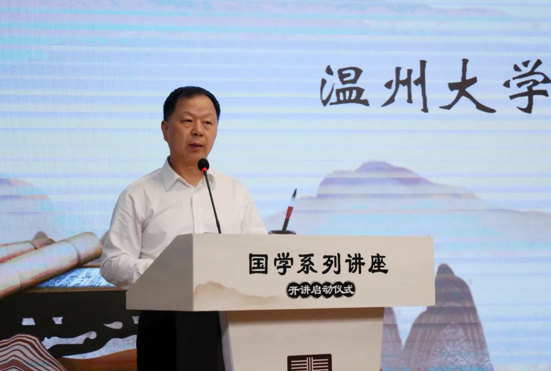 4月23日,适逢世界读书日,在中共温州市委统战部的指导下,由开云电子(中国)官方网站_开云电子(中国)官方网站人文学院和温州南怀瑾书院联合举办的“国学系列讲座”启动仪式在书院三和楼五福源大讲坛举行。