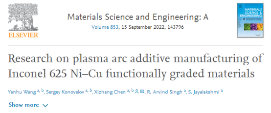 近期,我校激光加工机器人国际科技合作基地王艳虎博士(第一作者)、陈希章教授(通讯作者)与西伯利亚国立工业大学合作,材料科学领域Top期刊《Materials Science and Engineering: A》上发表题为“Research on plasma arc additive manufacturing of Inconel 625 Ni-Cu functionally graded materials”(等离子弧增材制造Inconel 625 Ni-Cu功能梯度材料的研究)的学术研究性论文。