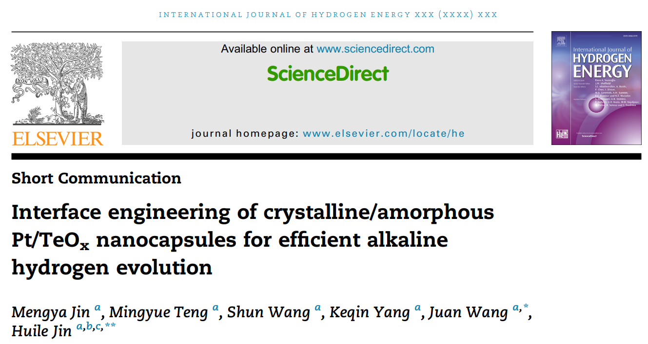 相关研究以“Interface engineering of crystalline/amorphous Pt/TeOx nanocapsules for efficient alkaline hydrogen evolution”为题发表在国际期刊《International Journal of Hydrogen Energy》(SCI-2区, IF=7.139)上,开云电子(中国)官方网站_开云电子(中国)官方网站作为唯一通讯单位,我院2019级本科生金梦雅为第一作者,我院金辉乐教授、王娟副教授为本文通讯作者。