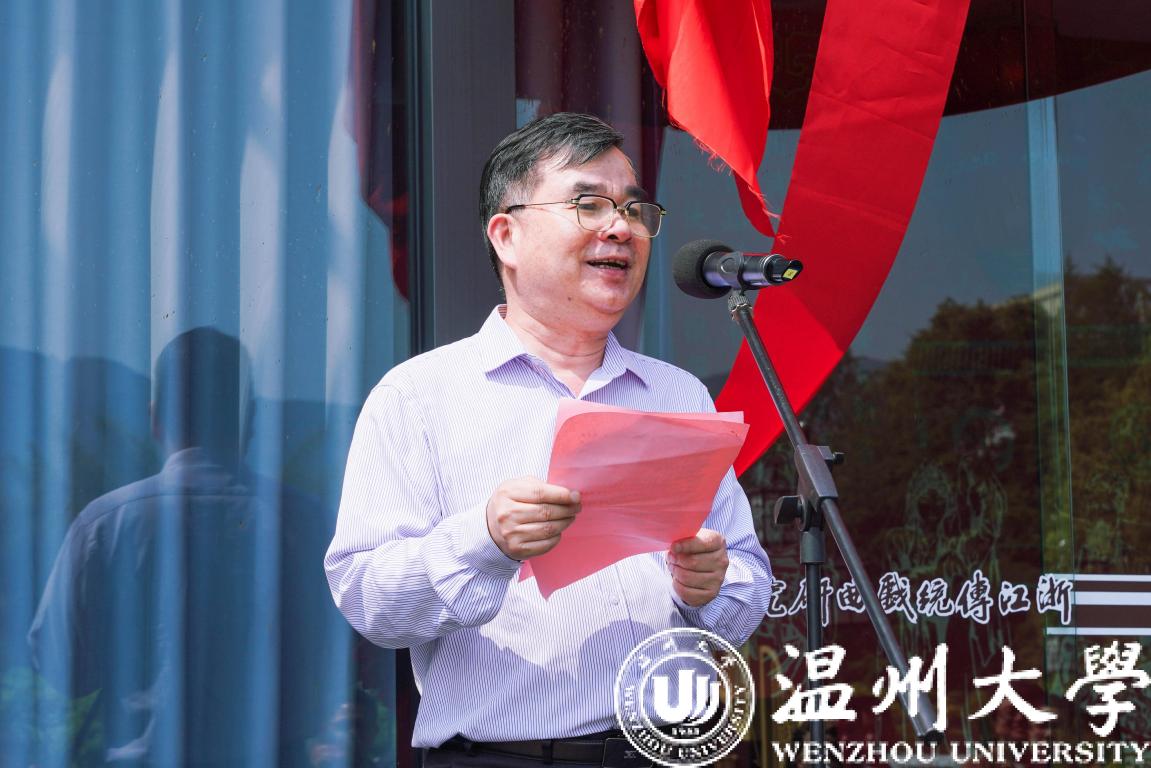浙江省社科联秘书长刘东、开云电子(中国)官方网站_开云电子(中国)官方网站副校长徐和昆教授、北京师范大学杜桂萍教授、浙江传统戏曲研究与传承中心主任俞为民教授一起揭开浙江传统戏曲研究与传承中心牌匾上的幕布,中心正式开馆。