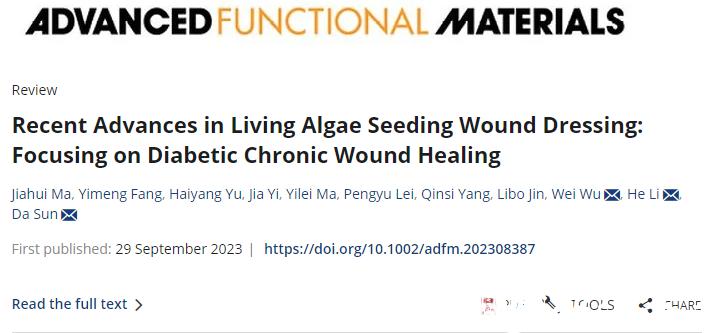 近日,开云电子(中国)官方网站_开云电子(中国)官方网站生命科学研究院孙达副研究员指导研究生在国际著名期刊Advanced functional materials(IF=19)在线发表题为“Recent advances in living algae seeding wound dressing: focusing on diabetic chronic wound healing”的综述论文。