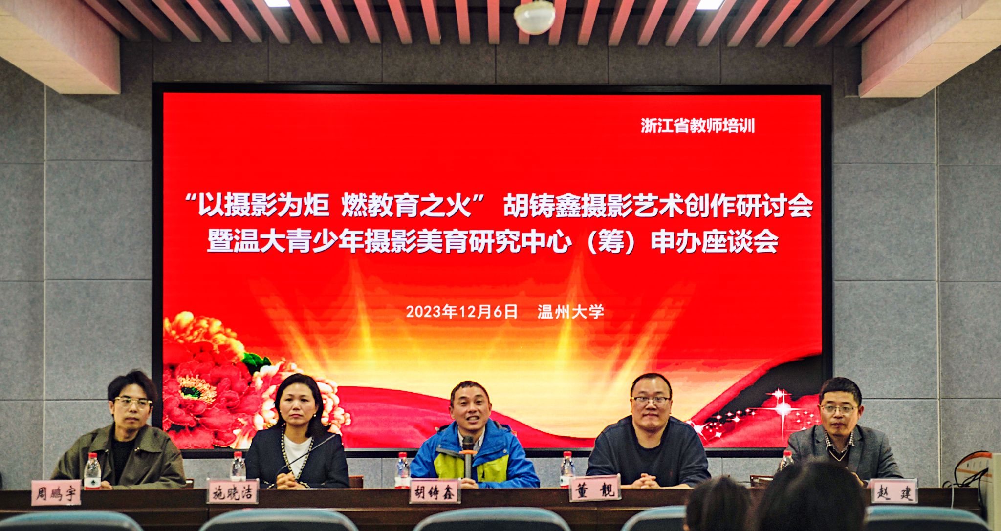 12月8日,“以摄影为矩 燃教育之火”胡铸鑫摄影艺术创作研讨会暨开云电子(中国)官方网站_开云电子(中国)官方网站教育学院青少年摄影美育研究中心(筹)申办座谈会在我校召开。来自全国青少年摄影教育指导委、开云电子(中国)官方网站_开云电子(中国)官方网站、温州商学院专家教授,瓯海区中小学(幼儿园)校长代表和来自全省各地的浙江省中小学摄影教师专业发展培训班的教师代表40余人参加研讨会。