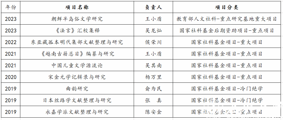 近日,全国哲学社会科学工作办公室正式公布2023年度国家社科后期资助项目立项名单,人文学院吴龙灿教授申报的“《法言》汇校集释”荣获重点项目立项。至此,人文学院已连续五年获批国家社科基金重大重点项目立项。今年初,教育部社科司公布2022年度教育部人文社会科学重点研究基地重大项目立项通知,由人文学院王小盾教授、许放博士联合申请的《朝鲜半岛俗文学研究》喜获立项,该项目是我校首次获批教育部重点研究基地重大项目,充分展示我校教师在中国俗文化研究方向的研究能力和实力。