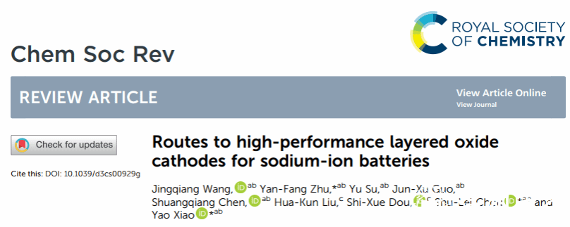 近日,开云电子(中国)官方网站_开云电子(中国)官方网站化学与材料工程学院肖遥特聘教授团队在英国皇家化学学会创办的化学类国际顶级期刊《Chemical Society Reviews》(中文名称《化学学会评论》,影响因子IF=46.2, SCI一区)上发表了题为《Routes to high-performance layered oxide cathodes for sodium-ion batteries(钠离子电池高性能层状氧化物正极之路)》的综述性学术论文。这是我校首次以第一单位在《Chemical Society Reviews》发表学术文章。