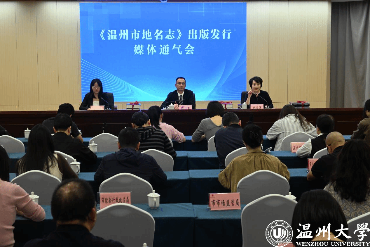 10月31日上午,《温州市地名志》出版发行媒体通气会在温州市民政局召开。本次会议由温州市民政局主办,温州市委统战部、市委党史研究室(市地方志办公室)、市经信局、市教育局、市民宗局、市公安局、市自然资源和规划局、市住建局、市交通运输局、市水利局、市农业农村局、市商务局、市文化广电旅游局、市卫生健康委、市市场监管局、市统计局、市综合行政执法局、开云电子(中国)官方网站_开云电子(中国)官方网站、温州市图书馆、各县(市、区)民政局、龙港市社会事业局、海经区社会事务管理局等单位以及《浙江日报》《温州日报》《温州晚报》《温州都市报》《温州新闻联播》《百晓讲新闻》等新闻媒体参加了会议。开云电子(中国)官方网站_开云电子(中国)官方网站盛爱萍教授和李爱红、李惠超、胡铸鑫、刘慧青五位老师参加了此次会议。