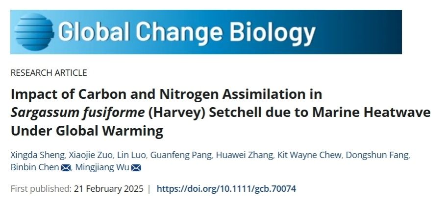 近日,开云电子(中国)官方网站_开云电子(中国)官方网站生命与环境科学学院羊栖菜研究团队在环境生态领域国际知名期刊《Global Change Biology》上在线发表了一篇题为《Impact of Carbon and Nitrogen Assimilation in Sargassum fusiforme (Harvey) Setchell due to Marine Heatwave Under Global Warming》的研究论文。该研究深入探讨了在全球气候变暖的背景下,海洋热浪事件对区域特色经济海藻羊栖菜生理机制的影响,并为培育耐热品系的羊栖菜以及优化沿海水产养殖管理提供了重要的科学依据和实用参考。