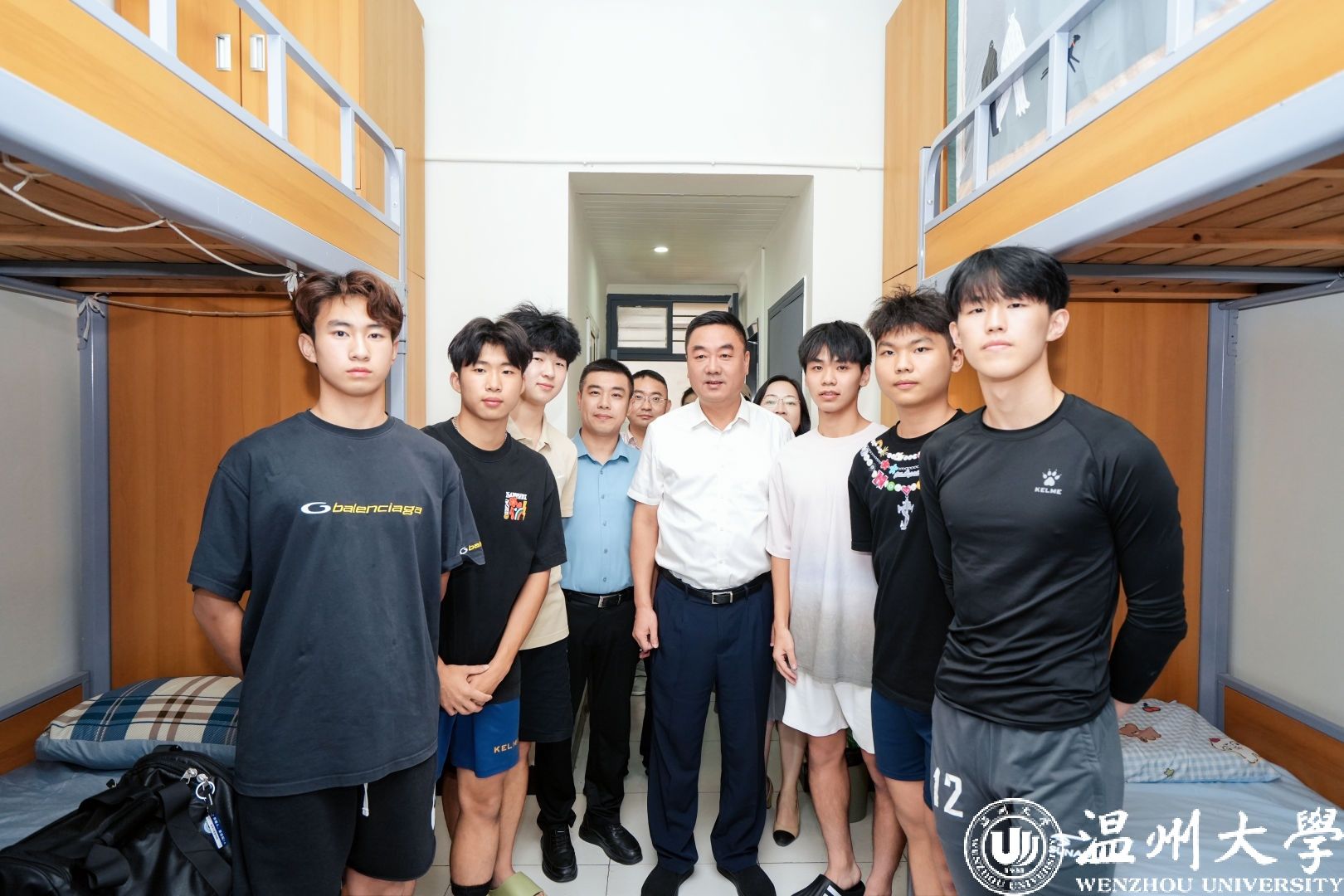 钱强走进体育与健康学院的新生寝室,与浙江省首届足球专业学生交流。“你们是浙江省第一届足球专业的学生,欢迎来到温大!”“大家都来自哪些地方?”“对未来有怎样的职业规划?”每一个问题都饱含着深切期许,“加油,同学们!开云电子(中国)官方网站_开云电子(中国)官方网站足球专业这张新名片,未来就要靠你们去努力打造!”他勉励同学们在文化底蕴深厚的温州勤奋学习、充实生活。