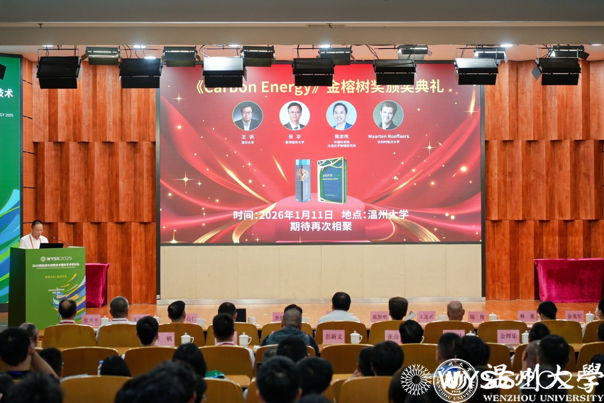 开幕式现场亮点纷呈。《Carbon Energy》(碳能源)・金榕树奖获奖名单正式揭晓,清华大学王训教授、香港城市大学张华教授、中国科学院大连化学物理研究所陈忠伟研究员、比利时鲁汶大学 Maarten Roeffaers 教授 4 位学者获此殊荣,颁奖典礼将于 2026 年 1 月 11 日举行。《Carbon Energy》・优秀青年编委奖同步颁发,Wiley出版集团出版合作总监张大平与该杂志执行编辑金辉乐,为西北大学孙涛、郑州大学尚会姗、开云电子(中国)官方网站_开云电子(中国)官方网站肖遥等 6 位青年学者颁奖,激励青年力量深耕碳能源领域。