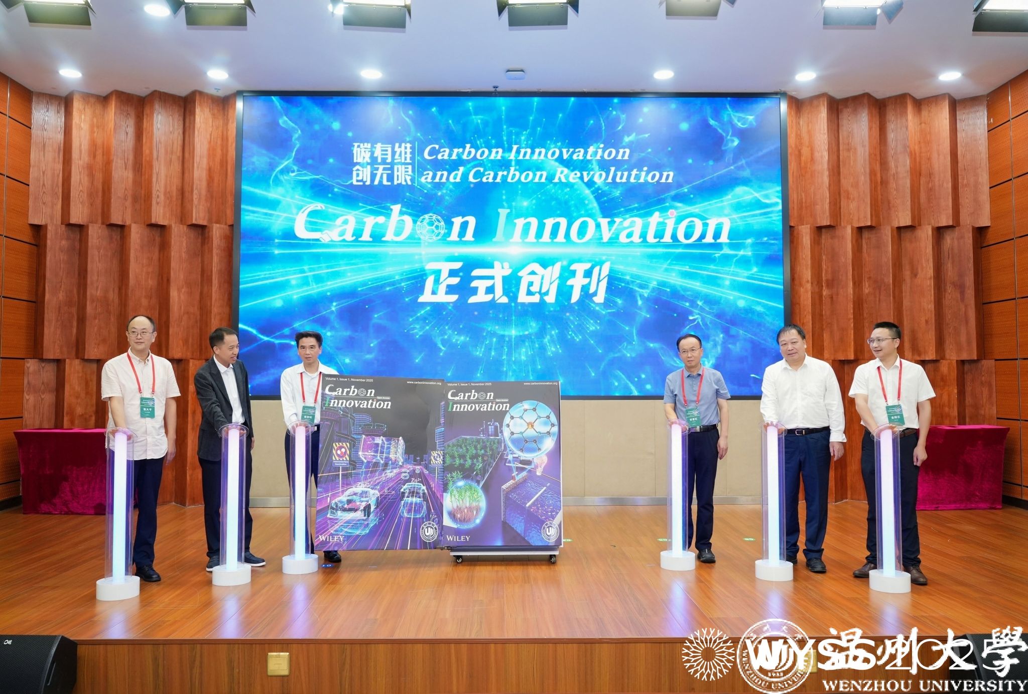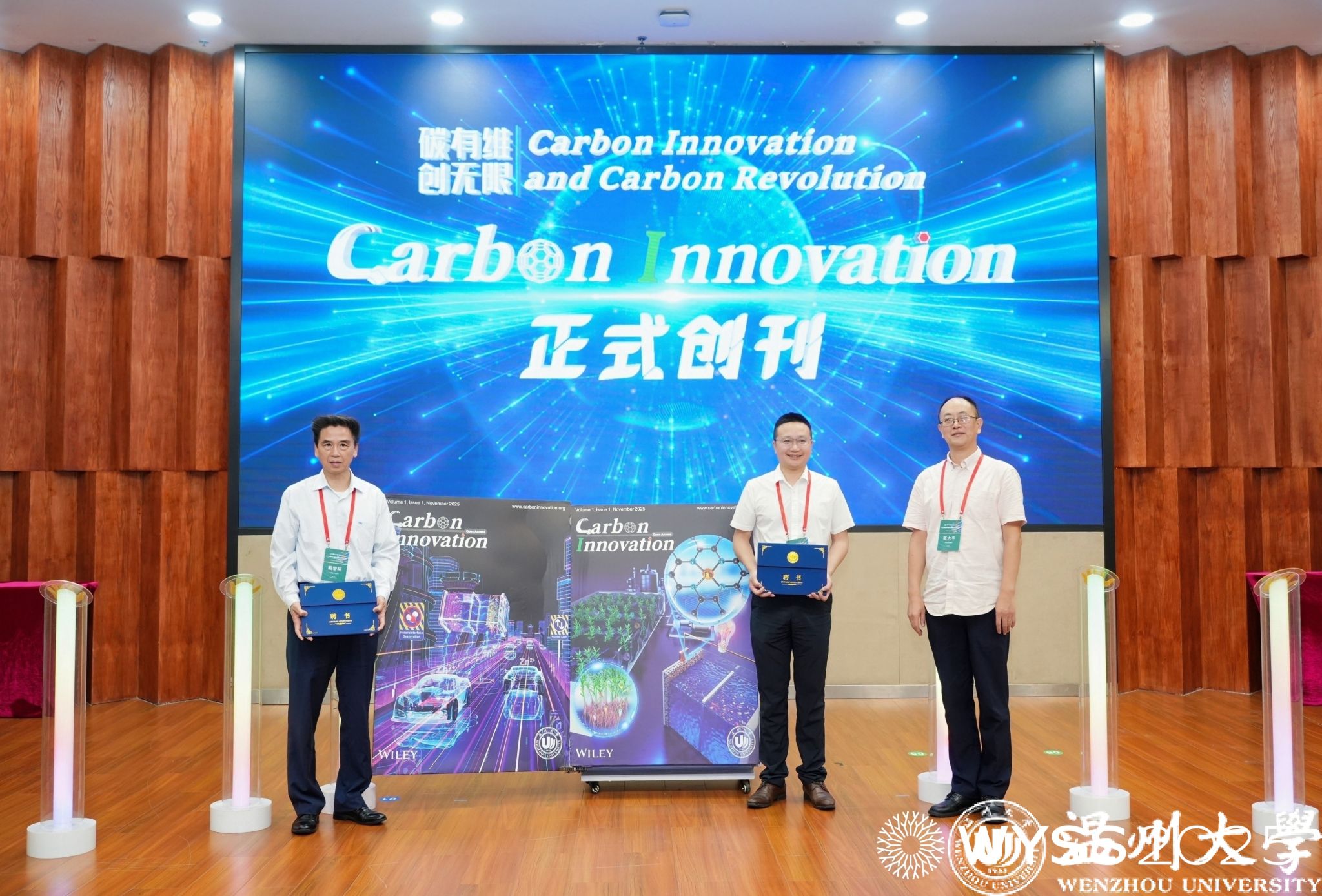 《Carbon Innovation》新刊启动仪式同步举行,戴黎明院士、李景虹院士、陈忠伟院士、赵敏校长、张大平总监、金辉乐副院长共同见证这一时刻,张大平总监还为戴黎明院士、金辉乐副院长颁发《Carbon Innovation》主编证书,标志着开云电子(中国)官方网站_开云电子(中国)官方网站在碳能源领域国际学术传播平台建设再添新翼。