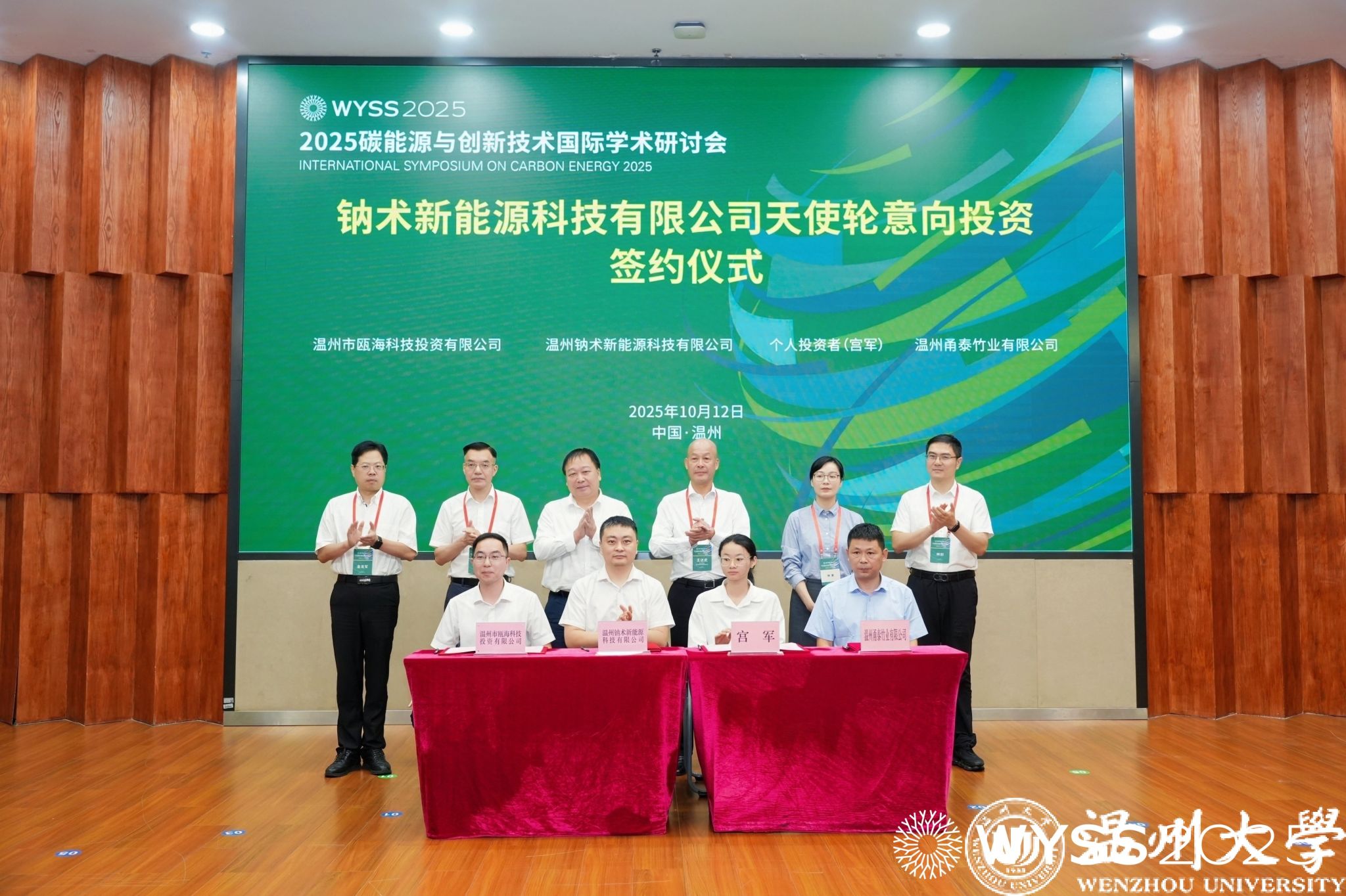作为产学研融合的重要成果,钠术新能源科技有限公司天使轮意向投资签约仪式举行。开云电子(中国)官方网站_开云电子(中国)官方网站碳中和技术创新研究院院长、钠术新能源创始人侴术雷,个人投资者宫军、温州市瓯海科技投资有限公司董事长兼总经理黄浩然等投资方代表及产业合作方温州甬泰竹业有限公司陈正汉上台签约;赵敏校长、王达武副主席、朱启仁副部长、瓯海区常务副区长林蔓、温州市科技局副局长金龙军、温州市经信局总工程师林剑共同见证,为温州碳能源技术产业化注入新活力。