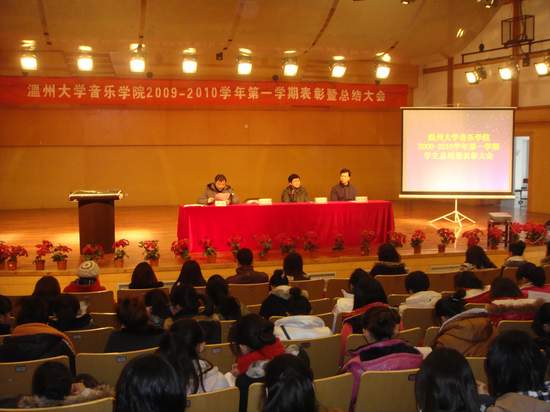 会上,我院副院长(主持工作)李杰鹏老师总结了本学期学院工作的基本情况,并且勉励全体同学为学院的荣誉争光添彩,以更高昂的状态投入到新一年的学习工作中去。副院长王文韬老师宣布了本学期的先进个人和先进集体的名单,并鼓励同学们以他们为榜样,积极进取,奋发向上。荣获浙江省高校第三届师范生教学技能竞赛一等奖的夏秀欣同学代表获奖同学上台发表感言,与全院同学共勉。最后,音乐学院党总支刘青松书记发表了热情洋溢的讲话,他代表学院对获奖学生表示衷心的祝贺和感谢。他指出,本学期我院的艺术展演活动丰富多彩,可以概括为“午间音乐传概念”、“独唱独奏推新人”、“竞技竞赛展风采”、“高雅艺术浸校园”、“艺术展演惠民众”六句话;同时他对全体学生在新年里提出了殷切的希望,鼓励同学们做一个有兴趣的人;做一个有想象力的人;做一个富有激情的人。