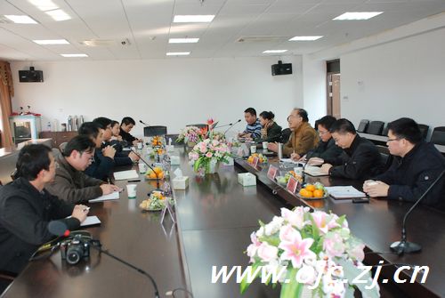张焕镇向客人们详细介绍了瓯江学院的办学历史、办学规模、师资力量、学科建设、专业建设、人才培养等情况。