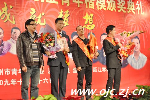 随后,在场领导为盛宇集团有限公司董事长曾上教、浙江跃华电讯有限公司董事长兼总经理王朝圣、浙江正德气动有限公司董事长支胜利等16名创业青年楷模颁奖,并举行了瓯江学院创业指导师聘任仪式和校企合作签约仪式。