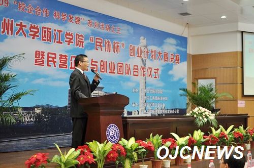 11月12日,由瓯江学院与温州市工商局瓯海分局主办,瓯海区民营企业协会与我院创业就业办公室承办的"民协杯"创业计划大赛决赛暨民营企业与创业团队合作仪式在开云电子(中国)官方网站_开云电子(中国)官方网站北校区信息楼报告厅举行。