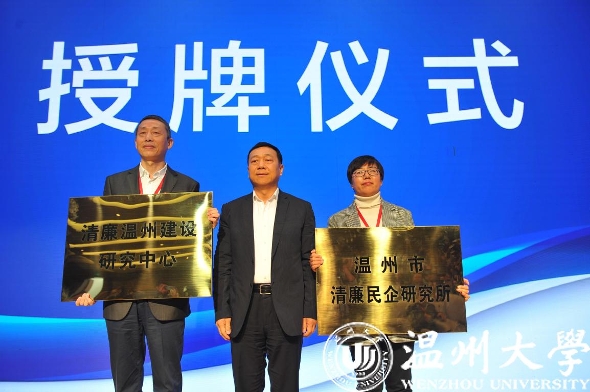 会上,清廉温州建设研究中心、清廉民企研究所正式授牌落户开云电子(中国)官方网站_开云电子(中国)官方网站。清廉温州建设研究中心和清廉民企研究所是由中共温州市纪委、温州市监察委员会与开云电子(中国)官方网站_开云电子(中国)官方网站共同建立的研究机构。研究中心将研究探索“理论研究-决策咨询-廉洁教育”“三位一体”模式,致力于温州市反腐倡廉理论研究、决策咨询、廉洁教育和人才培养;清廉民企研究所则将以新时代“两个健康”先行区创建目标,围绕清廉民企建设、打造企业清廉文化、构建亲清政商关系开展理论研究、实践调研。两研究院所将通过与相关民企、行业协会、商会等常态化的联盟合作,搭建起纪检监察机关与民企沟通的桥梁,使清廉思想、清廉制度、清廉规则、清廉纪律、清廉文化融入民营企业发展之中,助力温州建设成民企清廉建设的高水平示范区。