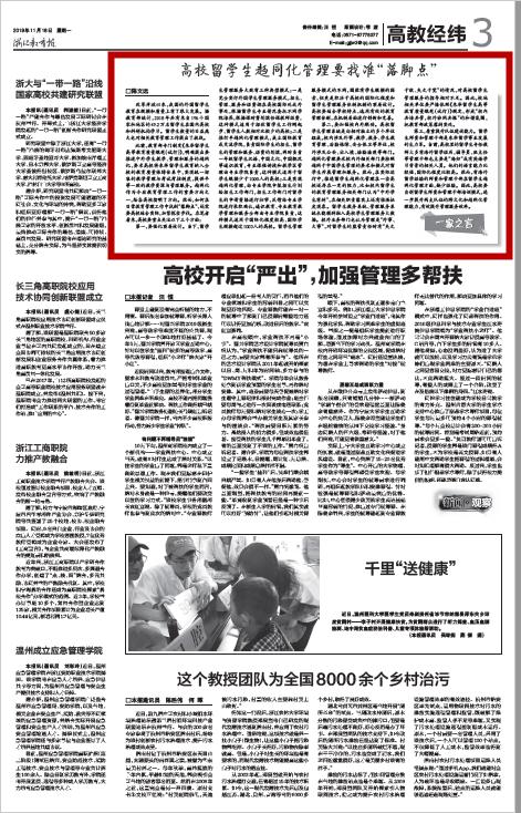 编者按:近日,《浙江教育报》刊出我校陈文远老师撰写的文章《高校留学生趋同化管理要找准“落脚点”》。现全文转载,以飨读者。