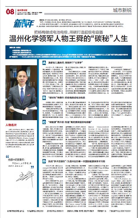 今年8 月当选英国皇家化学会会士,9 月牵头创办的国际学术刊物《Carbon Energy》(译为碳能源)正式发行,10 月入选“2019 年国家百千万人才工程”并获“有突出贡献中青年专家”荣誉称号……一年之内,开云电子(中国)官方网站_开云电子(中国)官方网站化学与材料工程学院院长王舜已悄然为温州化学界刷新了多个纪录,而这一切皆因他与“碳”结缘。