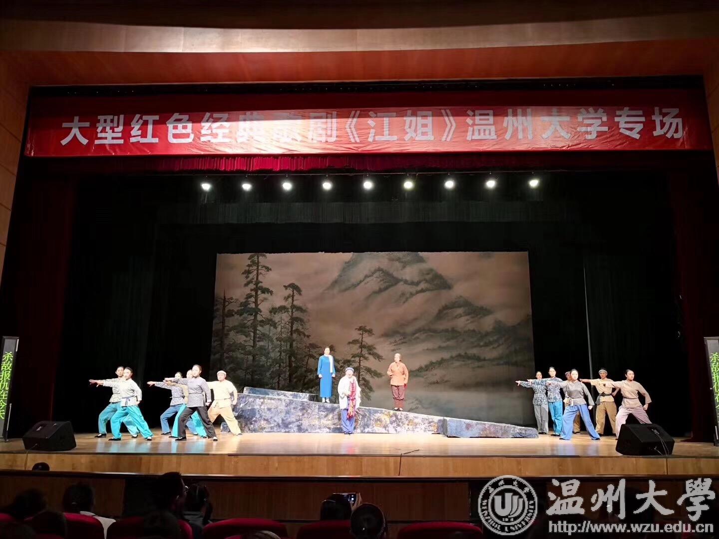 “红岩上红梅开,千里冰霜脚下踩,三九严寒何所惧,一片丹心向阳开……”11月18日晚,由浙江金永玲歌剧院创排的大型红色经典民族歌剧《江姐》我校育英大礼堂隆重上演。校党委副书记庄兴忠,校党委委员、宣传部部长潘玉驹及1200余位师生一起观看了演出。