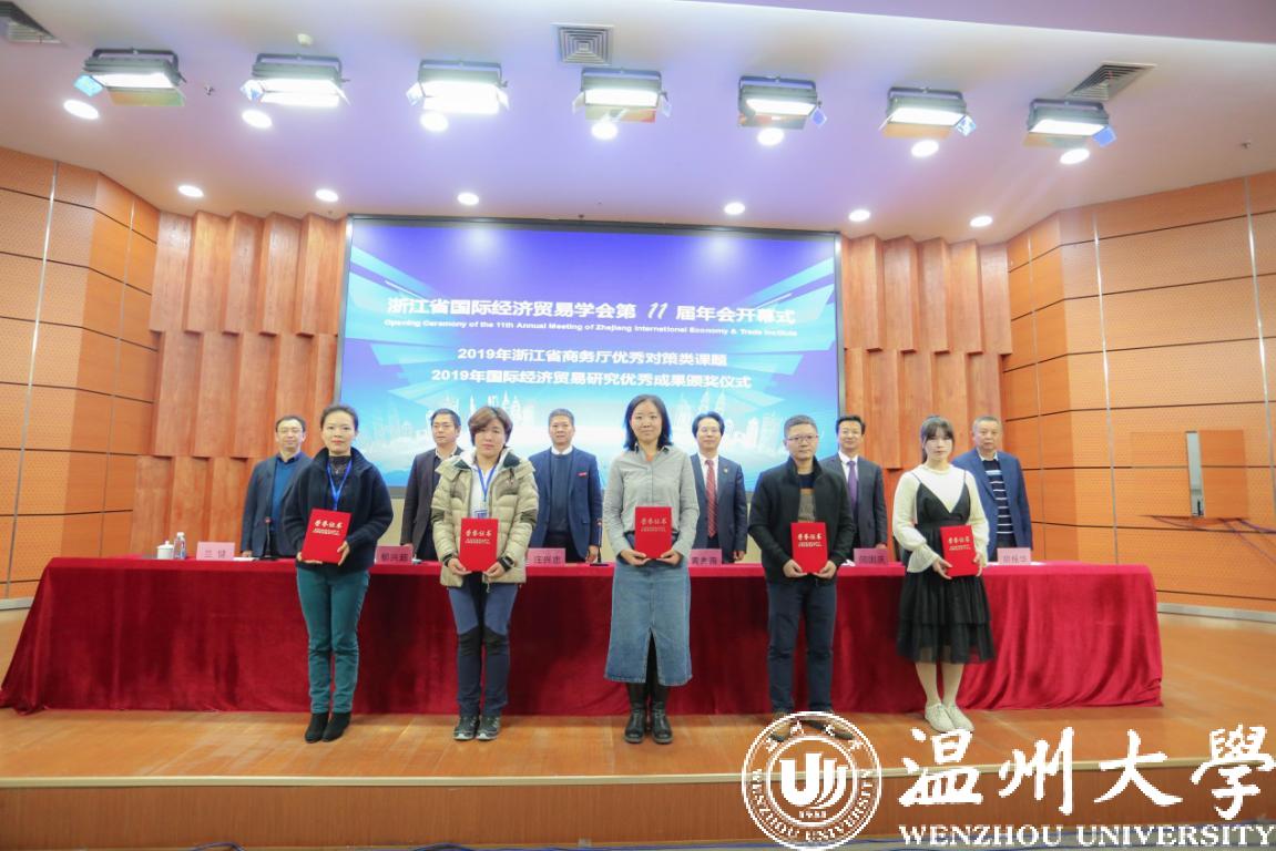 11月30日至12月1日,由我校商学院、浙江省温州人经济研究中心承办的献礼祖国七十华诞暨浙江省国际经济贸易学会第十一届年会召开。学会会长、浙江大学经济学院院长黄先海,学会副会长、浙江商务研究院院长兰健,浙江省社科联社团处处长郁兴超,温州市商务局局长应希克,校党委副书记庄兴忠等领导和嘉宾出席年会。