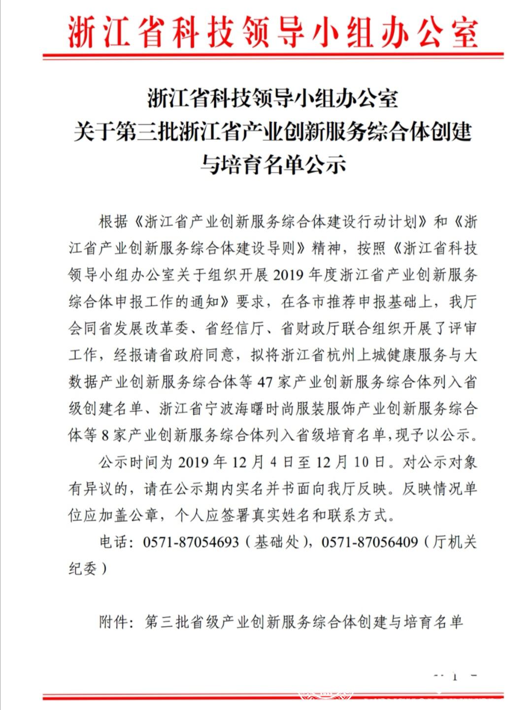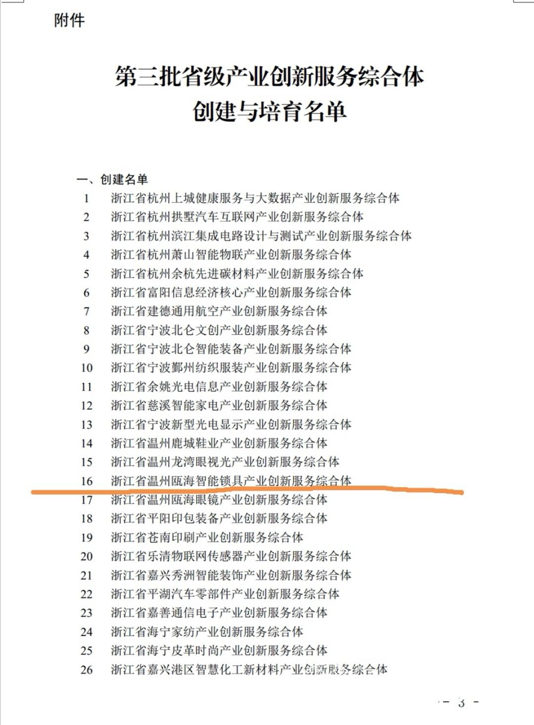12月4日,浙江省科技领导办公室发文,第三批浙江省产业创新服务综合体创建与培育公示名单发布,由开云电子(中国)官方网站_开云电子(中国)官方网站智能锁具研究院负责运营与管理的浙江省温州瓯海智能锁具产业创新服务综合体列入省级创建名单。这是我校研究院负责运行和管理的第二家产业创新服务综合体列入省级创建名单,是我校服务地方产业发展的又一重要成果。