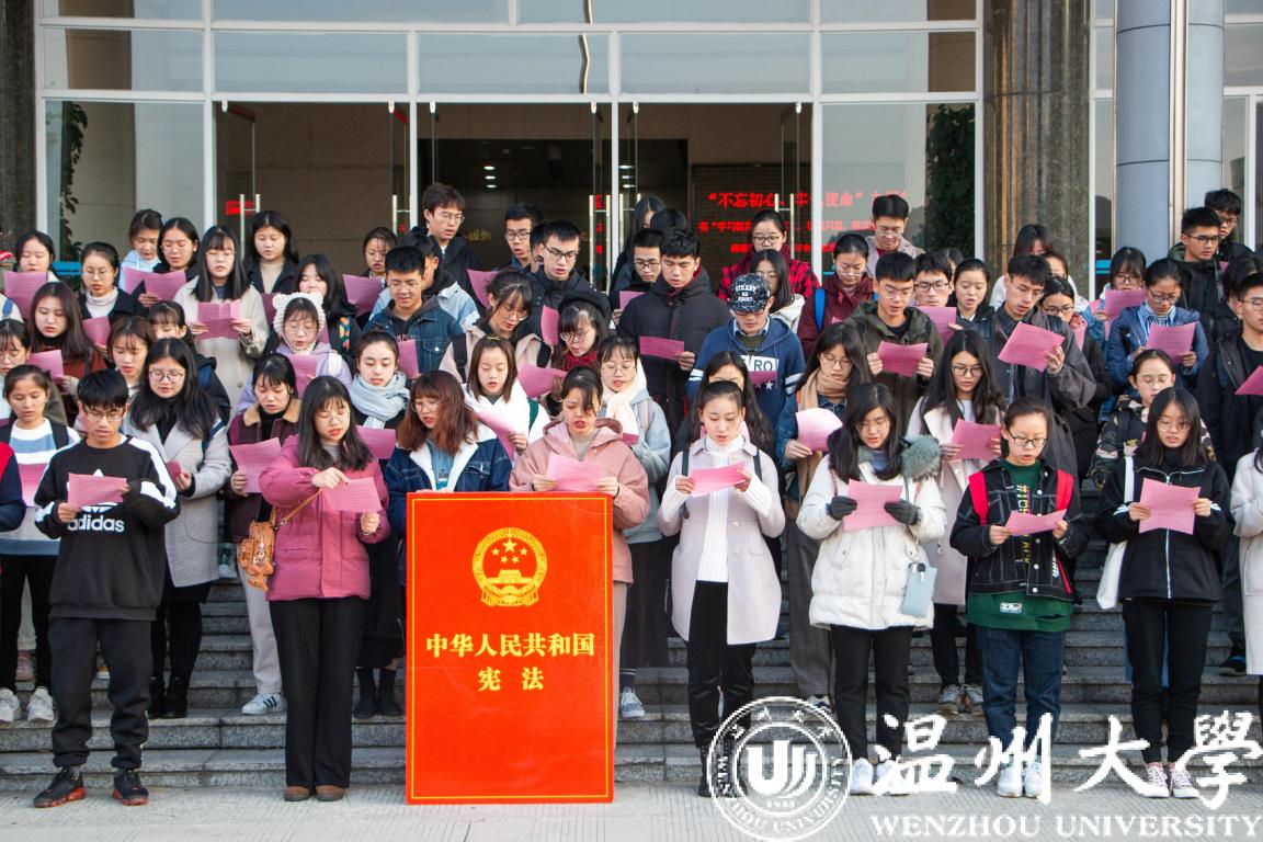 12月1日至7日是全国第二个“宪法宣传周”,12月4日是第六个国家宪法日,我校围绕今年全国宪法宣传周“弘扬宪法精神,推进国家治理体系和治理能力现代化”和浙江省教育系统“弘扬宪法精神,厚植爱国主义情怀”教育主题,深入学习宣传和贯彻落实党的十九届四中全会精神,由校党委宣传部主办、法学院等协办的宪法宣传教育系列活动持续深入开展。
