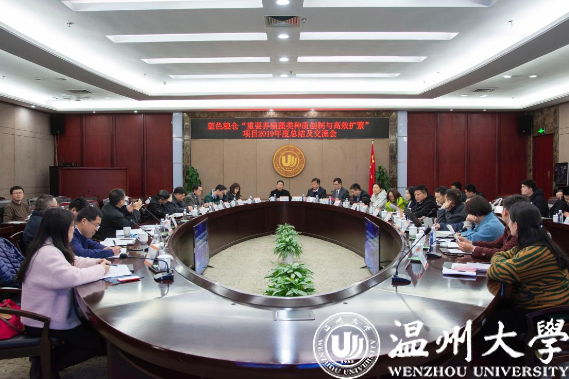 近日,国家重点研发计划“蓝色粮仓科技创新”重点专项“重要养殖藻类种质创制与高效扩繁”项目2019年度项目进展总结及学术交流会在我校岩松堂白鹿厅成功举行。科技部中国农村技术开发中心卢兵友处长及蓝色粮仓专项咨询专家组和项目咨询专家组一行11人莅临会议指导;校长赵敏教授、副校长徐和昆教授、科技处、生命与环境科学学院负责人及部分教师参加会议。会议开幕式由徐和昆主持。