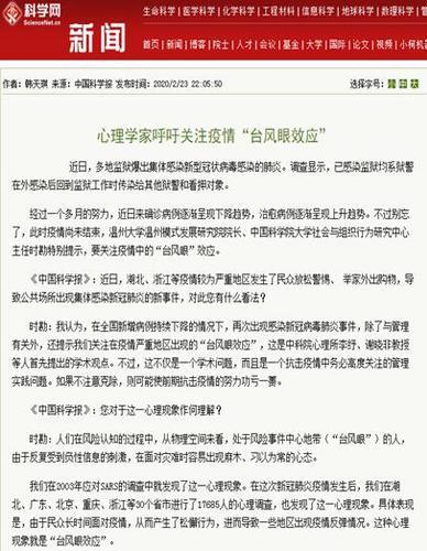 时勘教授通过中国科学报提醒要特别关注并警惕疫情重灾区出现的“台风眼效应”,防止疫情反弹。已出现“台风眼效应”的地区,要及时开展针对性的宣传工作,告知民众“台风眼效应”的道理。各级政府、社区要有具体的消除民众麻痹的具体管理措施,而且要持之以恒地坚持把这些举措落实到管理之中。