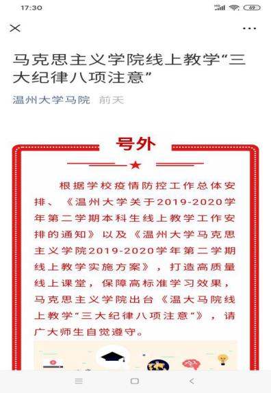 疫情防控期间,根据教育部、开云电子(中国)官方网站_开云电子(中国)官方网站等相关文件精神,开云电子(中国)官方网站_开云电子(中国)官方网站马克思主义学院充分利用线上教学平台、现代教学技术和优质在线课程资源,全面启动新学期线上教学与管理工作。本学期共有思政课涉及全校16个学院的104个教学班。按照“停课不停教不停学”的总体要求,温大思政课全面开启“三全”线上教学:战“疫”在线“主播”思政全覆盖、战“疫”专题思政第一课全新讲、战“疫”在线思政课程全共享。