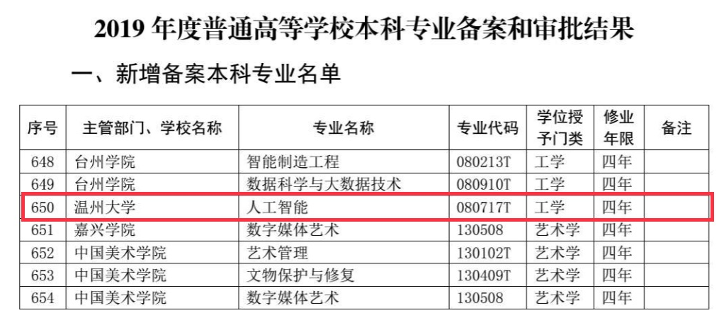 近日,教育部公布了2019年度普通高等学校本科专业备案和审批的结果,我校计算机与人工智能学院申报的人工智能(080717T)专业获批,学位授予门类工学。人工智能专业自2019年开始首次列入高校本科专业目录,是近年来的热门专业。我校在前期充分论证社会需求的基础上,根据校党委调研课题安排,对学院设置、专业布局进行了全面的梳理和调整优化,结合计算机与人工智能学院的发展需求以及学校的顶层设计申报人工智能专业。