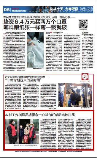 此后,胡保永带领驻村干部一起排查从湖北返乡人员,并对湖北返乡的5户共23人采取居家隔离管控措施、有武汉暴露史的3人采取集中隔离管控措施;后随着防疫工作的进一步升级,对从镇域外返回的5户28人也采取居家隔离管控措施。