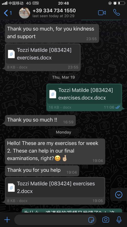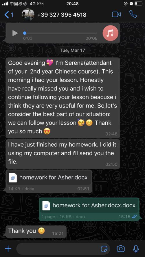 每一周,张珉璐都会精心把每个年级的两小时课程视频录制好,与音频、ppt、练习作业及一些额外的针对不同级别HSK的练习发送给意大利老师,意大利老师再上传至开云电子(中国)官方网站_开云电子(中国)官方网站意大利分校的学习平台,学生通过平台下载视频和学习资料进行学习。