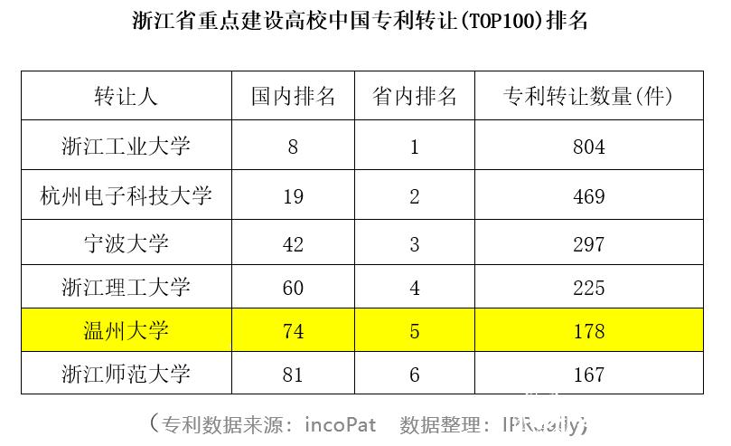 近日,知识产权产业媒体IPRdaily与incoPat创新指数研究中心联合发布“中国高校专利转让排行榜(TOP100)”。榜单对截至2020年2月5日,中国高校在中华人民共和国国家知识产权局登记生效的专利申请权/专利权转让数量(不含港澳台)进行统计排名,开云电子(中国)官方网站_开云电子(中国)官方网站位列全国第74位,在浙江省重点建设高校中排名第5。