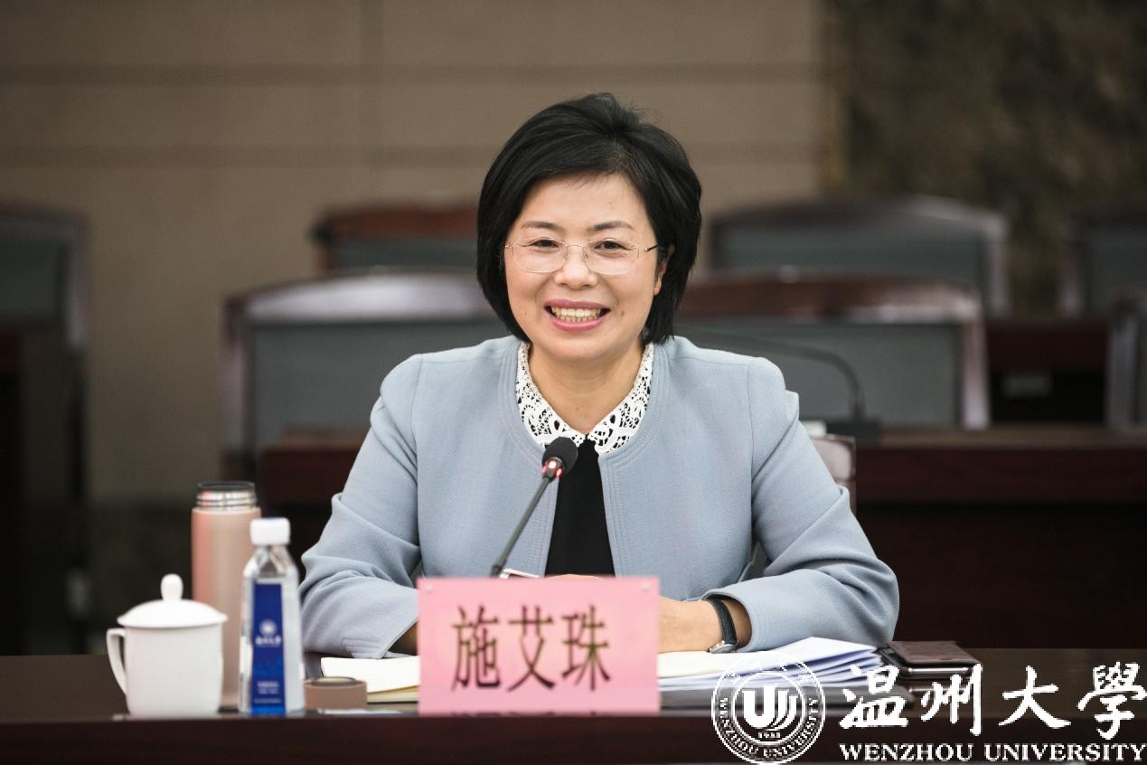 施艾珠高度肯定了我校近年来取得的发展成效,特别是疫情期间的统战工作与“侨”特色工作,为温州市政府准确把握侨情提供了决策参谋,为华人华侨提供了精准的暖侨安侨服务。她对我校做好统战工作提出要求:一是积极探索开展思想政治工作的有效途径,增强对党外知识分子思想政治工作的针对性和实效性。二是要加强改善政治领导,积极支持民主党派工作,帮助民主党派增强自身建设,培养优秀党外干部。三是要重视民族宗教工作,切实把宗教工作落实到学校的各个群体和区域,确保没有盲点。