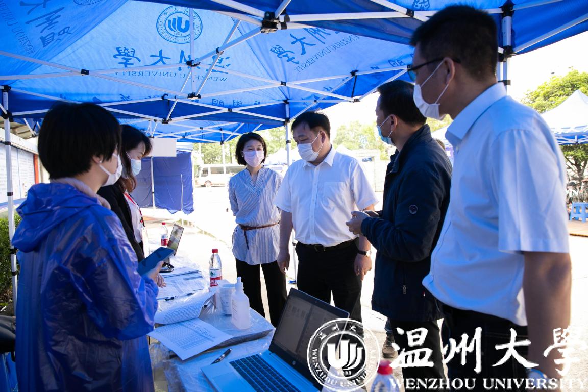 5月7日,校党委书记谢树华来到我校设在温州动车南站等处的接待点、消杀点和报到点,对报到和接站流程进行检查,并亲切慰问返校学生和接站工作人员。