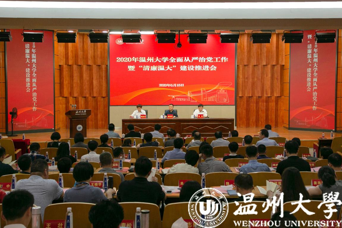 5月15日下午,我校在南校区岩松堂雁山厅举行2020年全面从严治党工作暨“清廉温大”建设推进会。全体校领导,校纪委委员,全体中层干部,学院纪委书记,党总支、直属党支部纪检委员,纪检监察室全体人员参加会议,校长、党委副书记赵敏主持。