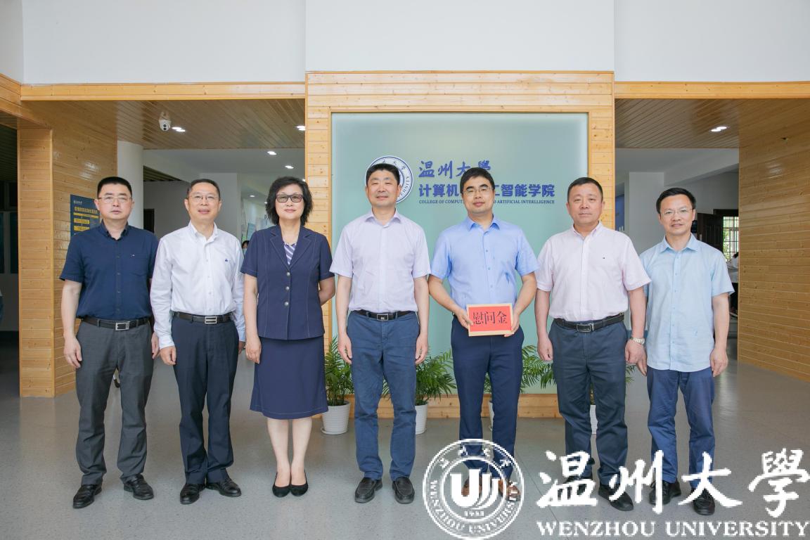 5月25日,在第四个全国科技工作者日即将到来之际,温州市委副书记、政法委书记陈浩,市人大常委会副主任徐育斐,市委副秘书长包光许,市科协党组书记、主席赖颖等领导一行慰问我校科技工作者优秀代表、计算机与人工智能学院院长张笑钦教授。校党委书记谢树华陪同。