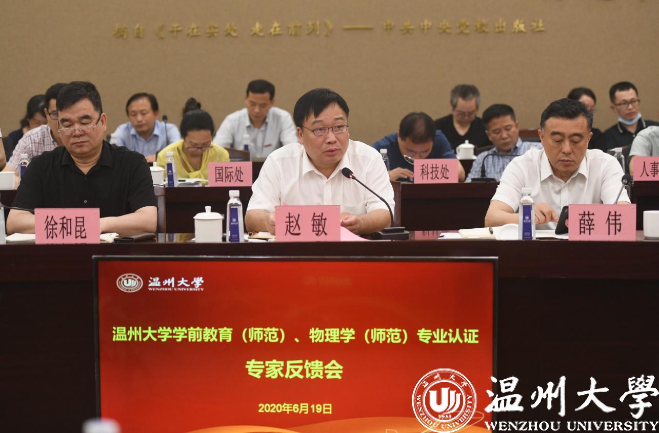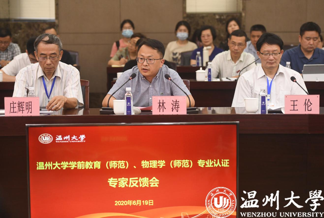 2020年6月19日下午,经过认证专家组3天高强度的考查工作,学前教育、物理学专业师范类第二级专业认证专家意见反馈会在岩松堂白鹿厅举行。