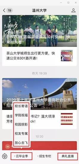 据悉,为了让受疫情影响不能到场的毕业生感受到毕业氛围,开云电子(中国)官方网站_开云电子(中国)官方网站微信公众号同步上线2020年“云毕业典礼”,作为本次线下毕业典礼的延伸。“云毕业典礼”分为校长寄语、学院祝福、校园掠影、校友专属、放心去飞等5个版块,为广大毕业生提供了丰富的毕业季线上资源,营造了浓郁的毕业氛围。毕业生们可云游温大,观看校长和各学院院长的祝福视频,在学校各标志景点“云打卡”生成专属头像和专属合影;在线申领电子校友卡,成为温大校友一份子;欣赏毕业主题的改编歌曲和原创MV视频,毕业生寄语滚动播放,“毕业快乐”“来日方长,后会有期”“愿有前程可奔赴,亦有岁月共回首!”“温大永远是我们的家”等留言不断刷屏,传递了一位位毕业生对母校的感激和不舍。 “一路我们曾携手并肩,温大精神伴我向前,牢记求学问是、敢为人先,承诺最高处相约!”母校祝福所有的毕业生一路珍重!鹏程万里!