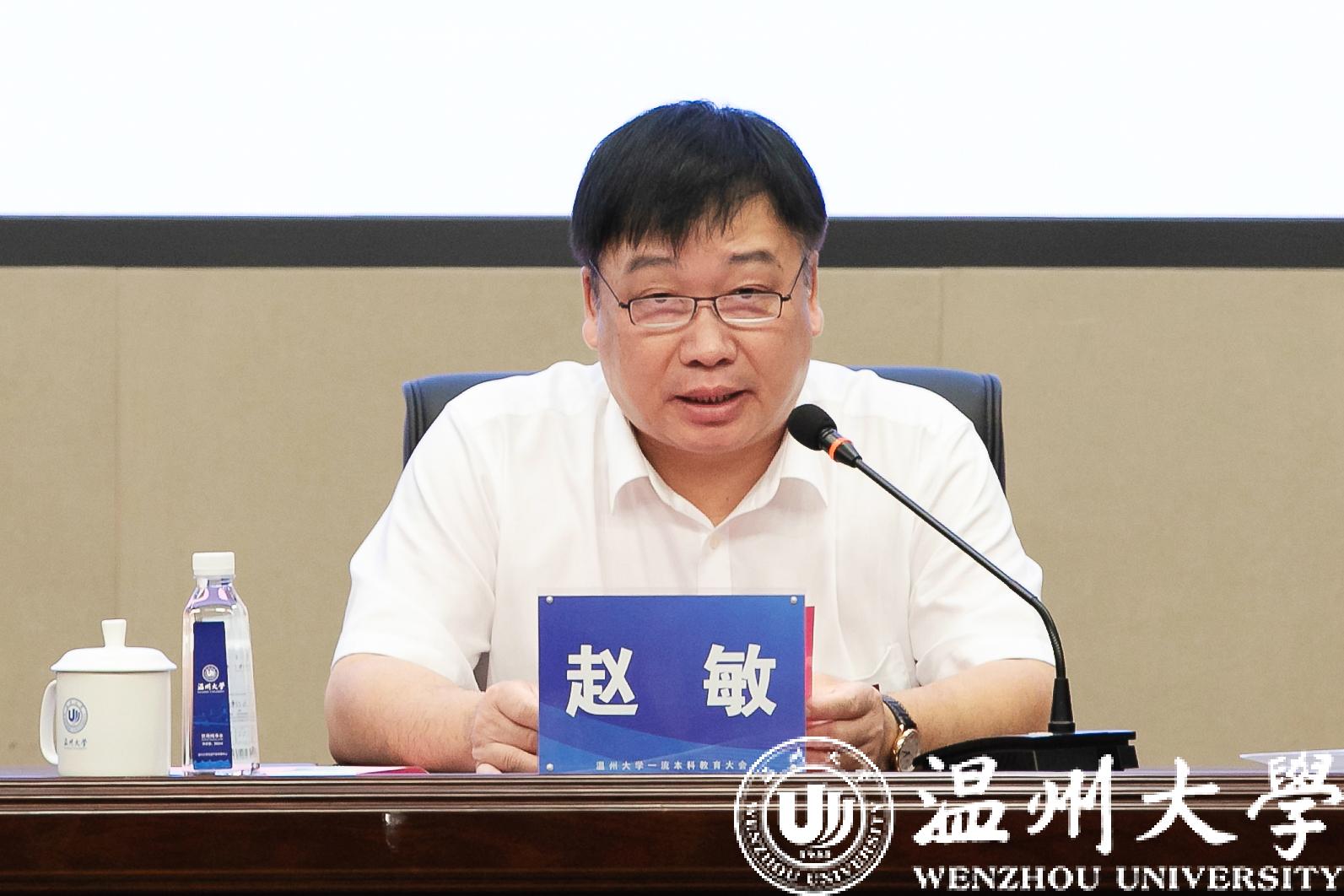 校长赵敏以《深化改革创新 提升内涵质量 全面建设中国风格、温大特色的一流本科教育》为题作主题报告。他指出,“十三五”以来,学校强化顶层设计、内涵建设和协同育人,大力实施人才培养质量提升工程,本科教育工作基础地位日益凸显,立德树人根本任务落到实处,专业内涵建设更加丰富,教学内涵建设进一步深化,学生创新创业教育成果涌现,教师教书育人能力不断提升,学校本科教育取得明显成效。赵敏还深刻剖析了当前本科教育面临的形势任务。他强调,建设一流本科教育是学校落实立德树人根本任务的具体行动,面临新形势、新要求和新挑战,一定要科学谋划未来,构建一流本科教育的发展体系,认真落实《开云电子(中国)官方网站_开云电子(中国)官方网站一流本科教育三年行动计划》。具体包括实施“六卓越一拔尖2.0”,高水平推进一流专业建设;开展课堂教学创新,高质量推进一流课程建设;深化政产学研融合,多维度推进实践体系建设;适应区域经济发展,多平台推进一流“双创”教育;提升教师教学能力,高标准推进一流师资队伍建设;构建质量评估制度,多层次推进保障体系建设;聚焦高显示度和品牌化,打造标志性教学改革成果等。他希望全体温大人担当克难、奋发图强,共同为建设中国风格、温大特色的一流本科教育,实现特色鲜明的高水平教学研究型大学的目标定位而努力奋斗。