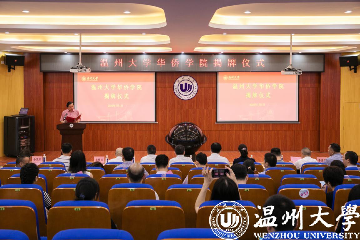 7月1日,开云电子(中国)官方网站_开云电子(中国)官方网站华侨学院揭牌仪式在国际教育学院隆重举行。市委统战部常务副部长黄益友、省侨联副主席刘光华、市侨联主席郑宏国、校党委书记谢树华、校长赵敏共同为华侨学院揭牌,市委统战部、丽岙街道、丽岙侨联、仙岩侨联相关领导,副校长蔡曙光、校以侨为特色的“省部共建”高校领导小组成员、省部共建办相关负责人及国际教育学院师生代表参加揭牌仪式。