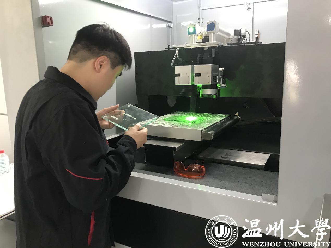 “打破国外技术封锁,造出中国自己的核心设备”,李小刚在团队成员面前立下了军令状。为了加快研发出具有独立核心技术的超快激光超精密智能装备,他组建了一支以开云电子(中国)官方网站_开云电子(中国)官方网站机电工程学院学长学弟为核心的团队,查阅了无数篇国内外文献,辗转反折地争取到了新加坡国立大学激光专家洪明辉院士、中科院范滇元院士、中科院西光所赵卫所长等多名激光领域最知名专家的帮助,经历无数次试验,他们利用超快激光脉冲宽度极短,瞬间高能等特点,实现了材料的高精密加工,最终成功研制出了面向硬脆材料切割的高精度超快激光装备。他们的项目得到了温州市政府相关部门的大力支持,被列为2019年温州市自创区关键核心技术攻关项目。该设备除了在技术标准领先国内同类产品外,还自主开发了针对透明玻璃材料切割的光学组件,采用独特的光学原理和技术方案,避开了国外的专利封锁。