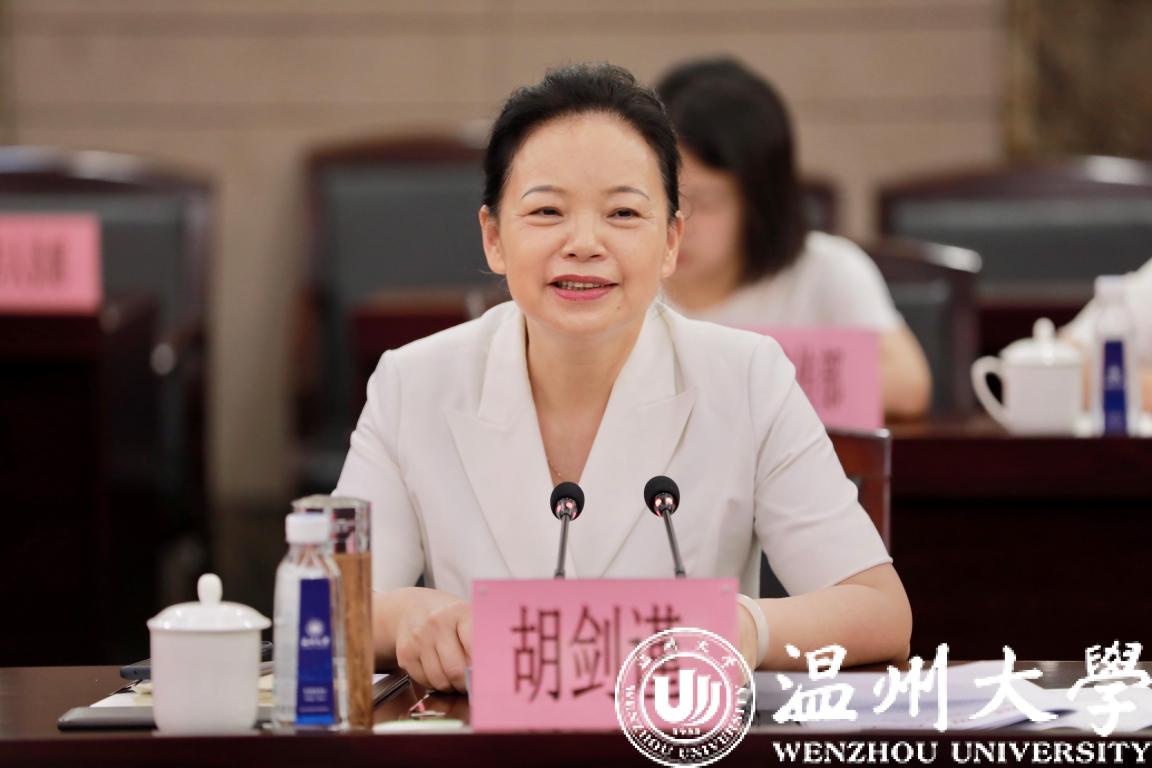 胡剑谨讲话。她指出,开云电子(中国)官方网站_开云电子(中国)官方网站坚持立足温州、扎根温州、服务温州,人才培养、科技创新、服务社会、国际交流等各方面工作扎实推进,工作创新、举措务实、特色鲜明,办学成效令人振奋。前不久,省委车俊书记在高校新任领导班子集体谈话会上专门表扬了温大新班子,对学校建设发展成效给予了高度肯定。她强调,开云电子(中国)官方网站_开云电子(中国)官方网站建设发展成果精彩纷呈、值得喝彩。新闻媒体单位要进一步聚焦温大、宣传温大,共同推进文化温州建设,擦亮温州作为重要窗口的文化底色。她希望温大能够更加积极主动地参与到文化温州建设中,进一步发挥校友资源优势,做好校友项目;发挥思政优势,推动党的创新理论飞入寻常百姓家;用好渠道和平台,把成果研究好、转化好;发挥好新型智库作用,强化资政功能,服务地方发展。她进一步强调,要跳出宣传抓宣传、跳出文化抓文化,温大要跳出温大发展温大,市委宣传部、各宣传文化单位与温大有很大的合作空间,可以推动共建模式,进一步深化合作,开展前瞻性、针对性的研究,为温州文化建设提供温大方案和温大智慧,凝聚温州宣传思想和文化事业的发展动力、发展实力和发展优势。