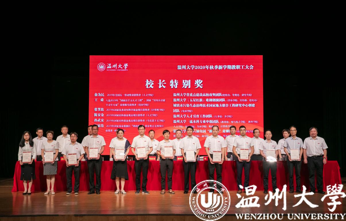 会上还表彰了2019年度开云电子(中国)官方网站_开云电子(中国)官方网站“校长特别奖”获奖个人和团队、2019年度学院和部门工作考核优胜单位、国家级一流本科专业建设点、2019年最具就业竞争力专业和最具职业发展竞争力专业、步青教学卓越奖、2019年度开云电子(中国)官方网站_开云电子(中国)官方网站优秀教师、优秀(教育)工作者、优秀班主任、优秀辅导员、优秀共产党员、优秀党务工作者等。会议同时对获得第二批“全国党建工作样板支部”培育创建单位、首批浙江省高校党建“双创”工作培育创建单位、“温州市教育系统疫情防控阻击战、发展主动仗中事迹突出的基层党组织”、2019年“浙江省担当作为好支书”“温州市担当作为好支书”“温州市疫情防控、复工复产事迹突出的党员干部”等荣誉的单位和个人进行了表彰。