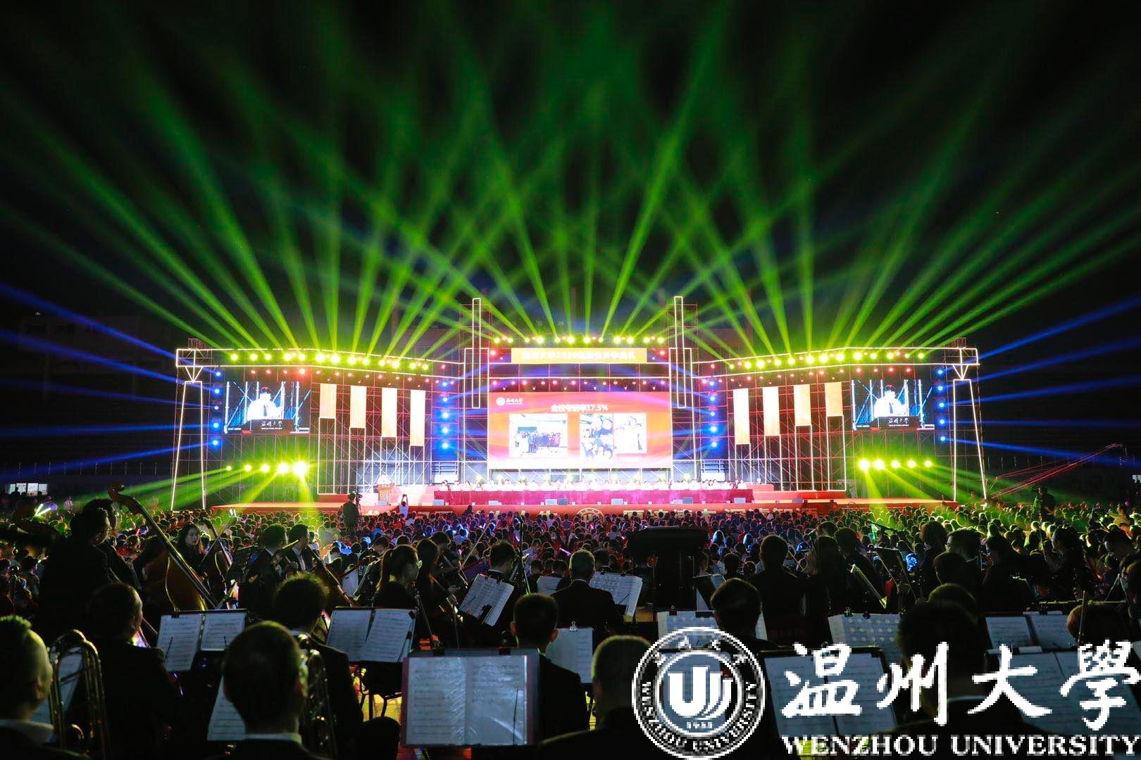 璀璨的灯光在夜空交相辉映,全体师生齐唱开云电子(中国)官方网站_开云电子(中国)官方网站校歌:“东海水,雁荡山,我温大精神,浩浩宕宕”,激昂的歌声撞击着每位新生的心房,这一刻,每位同学都为成为一名温大人而骄傲!