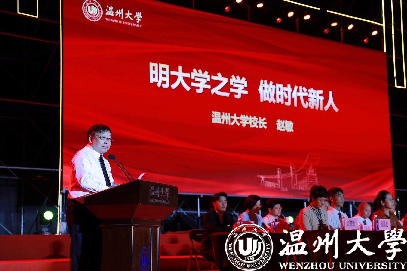 金秋十月,魅力温大,星光璀璨,青春飞扬!10月9日晚,我校隆重举行2020级新生开学典礼。校领导,各学院、部门负责人,新生班主任,辅导员,教师代表,校友代表及2020级全体新生参加典礼。校党委副书记庄兴忠主持。