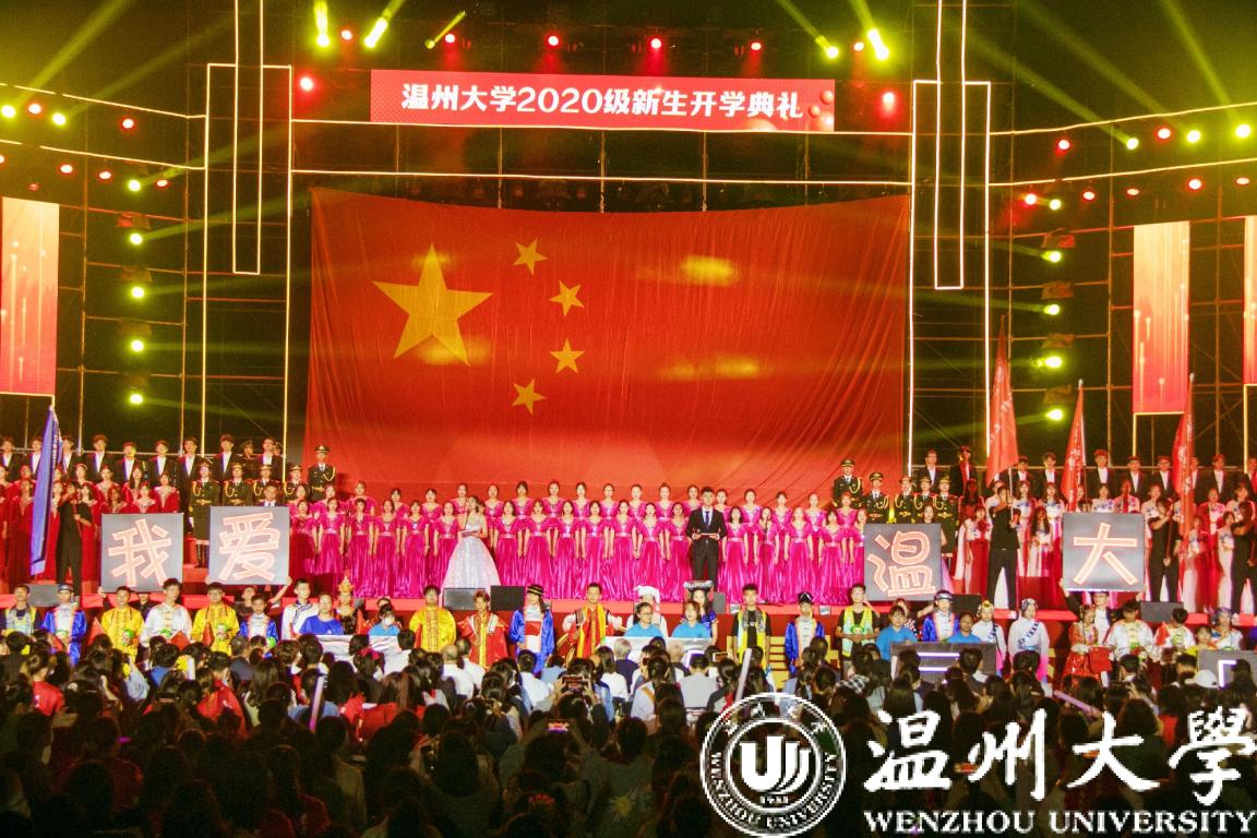 最后,嘹亮的《国旗颂》响起,温大学子在歌声中共祝祖国母亲繁荣昌盛!共祝温大再创辉煌!2020级新生与温大一起,与祖国一起,放飞梦想,奔向未来!