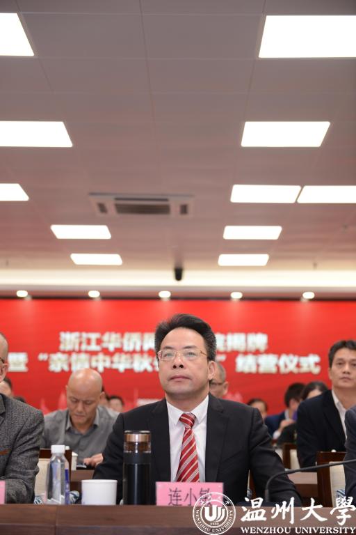 中国侨联、省侨办、省侨联、温州市侨联、校相关部门及学院负责人、云端“亲情中华·秋冬令营”海外华文学校校长、学员、家长代表等参加仪式。