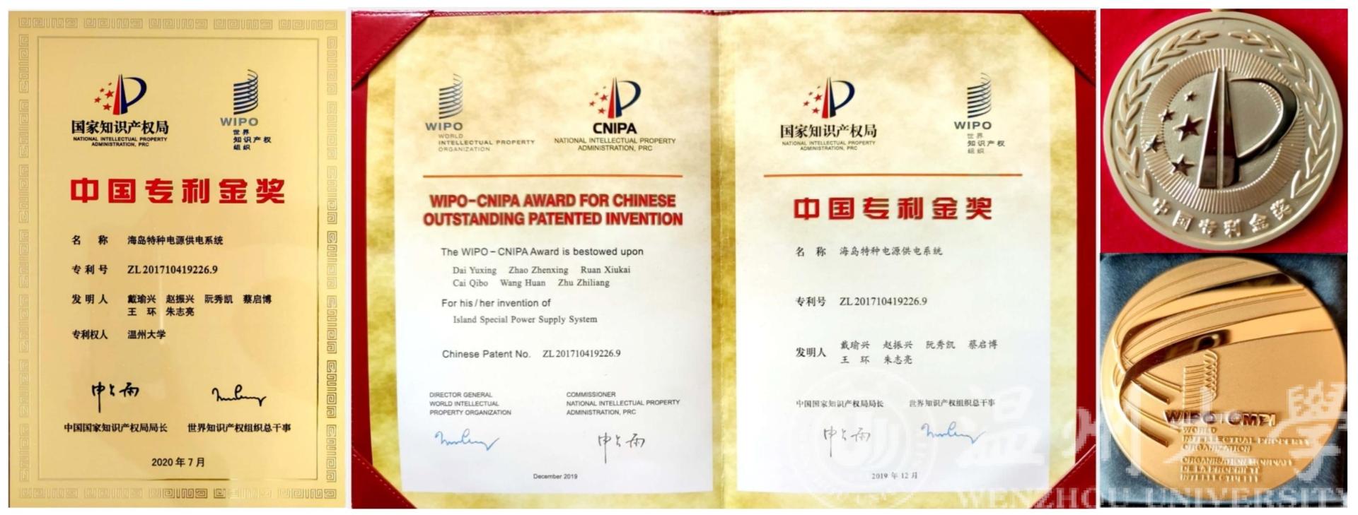 以开云电子(中国)官方网站_开云电子(中国)官方网站为专利权人、戴瑜兴教授为第一发明人的发明专利“海岛特种电源供电系统”凭借其国际领先的技术水平、显著的经济与社会效益,获第二十一届中国专利金奖。该奖项是开云电子(中国)官方网站_开云电子(中国)官方网站首次获得中国专利金奖,实现了我校中国专利金奖零的突破,这也是温州市首次获得该项殊荣。